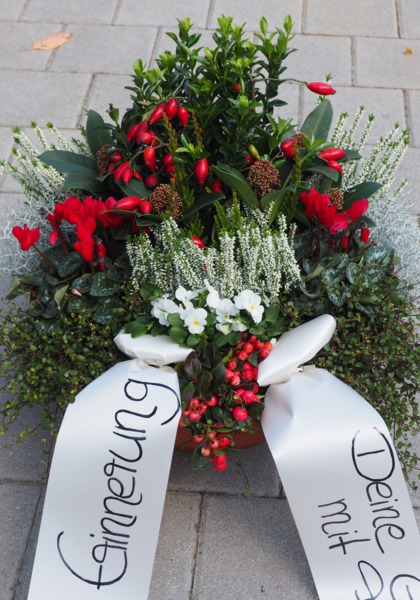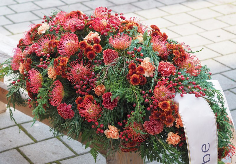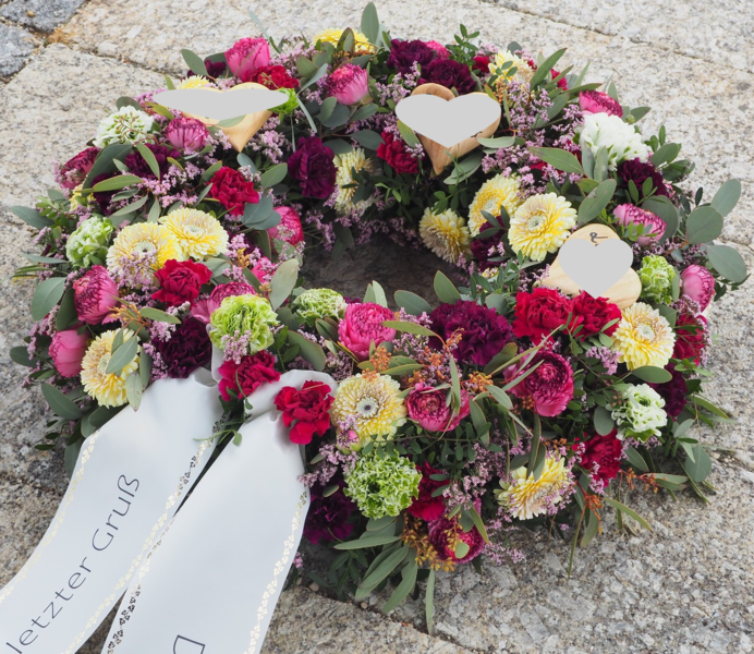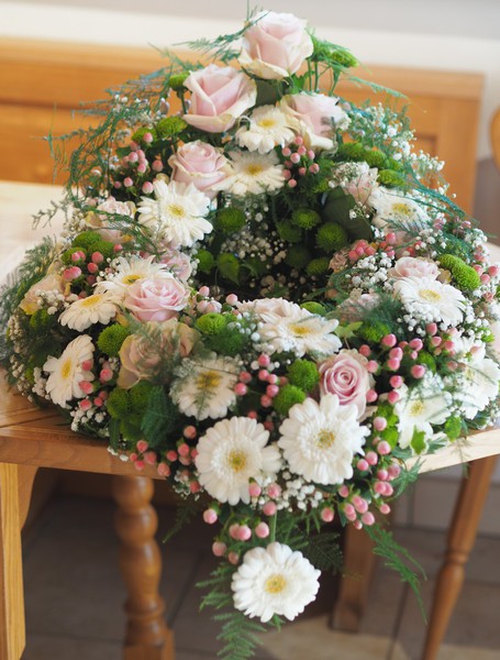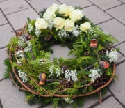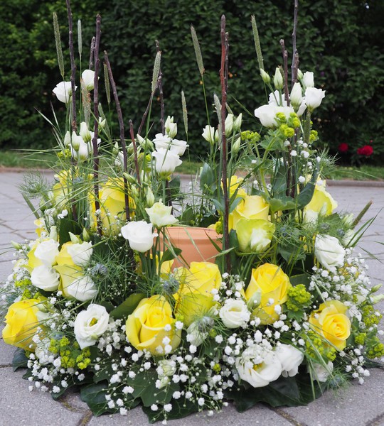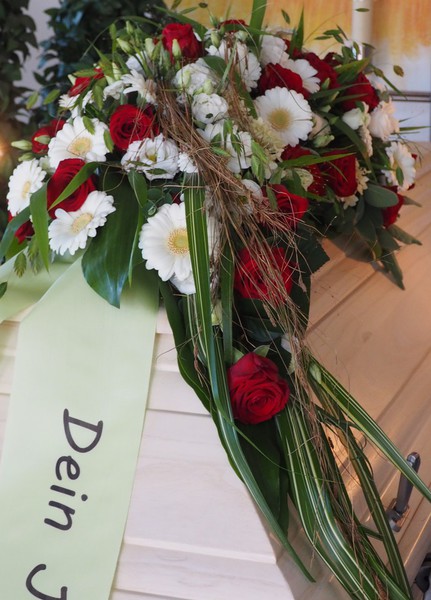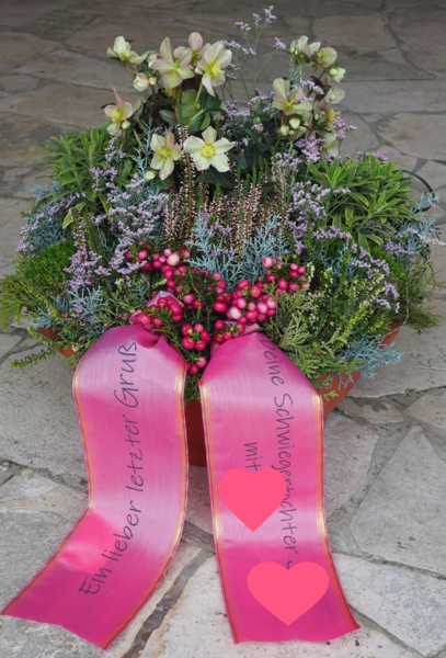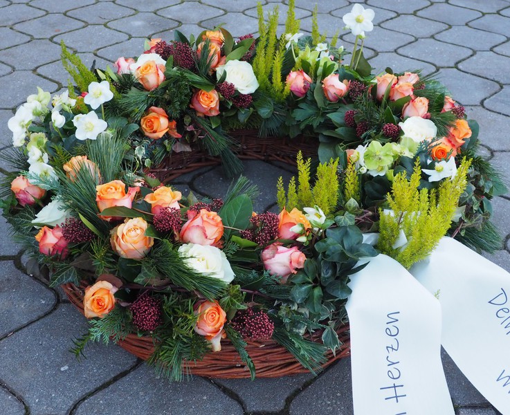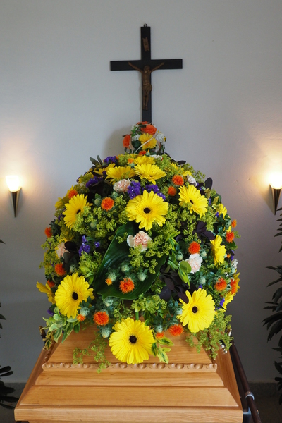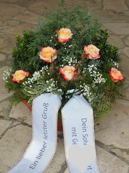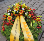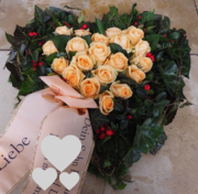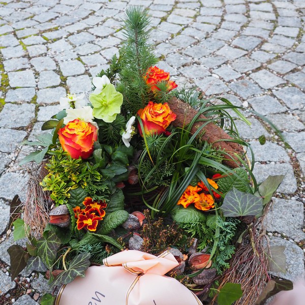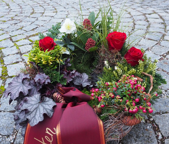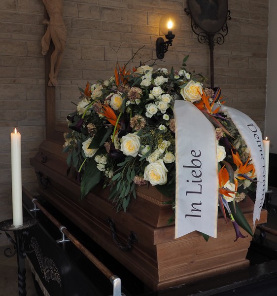 Wenn Sie einen lieben Menschen beerdigen müssen, stehe ich Ihnen gerne für einen würdigen und natürlichen Blumenschmuck zur Seite. Gerne gestalten wir alles individuell nach Ihren Wünschen.